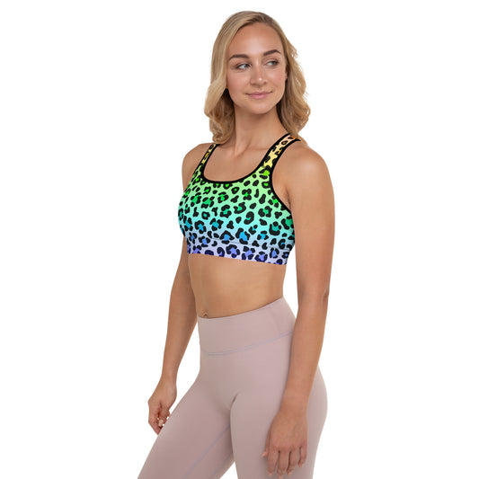 Rainbow Leopard Padded Sports Bra