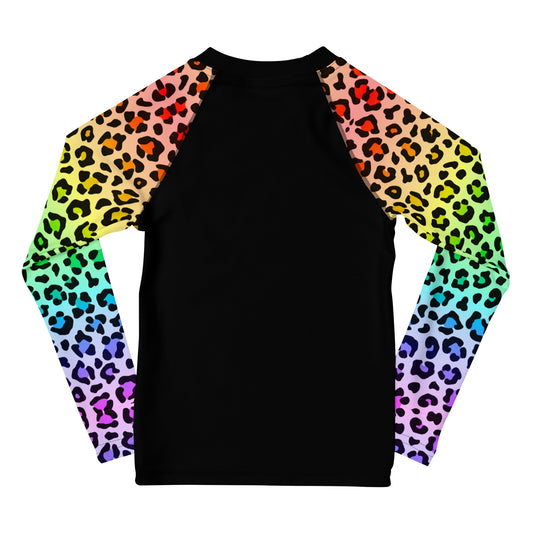 Youth Rainbow Leopard Long Sleeve Rash Guard
